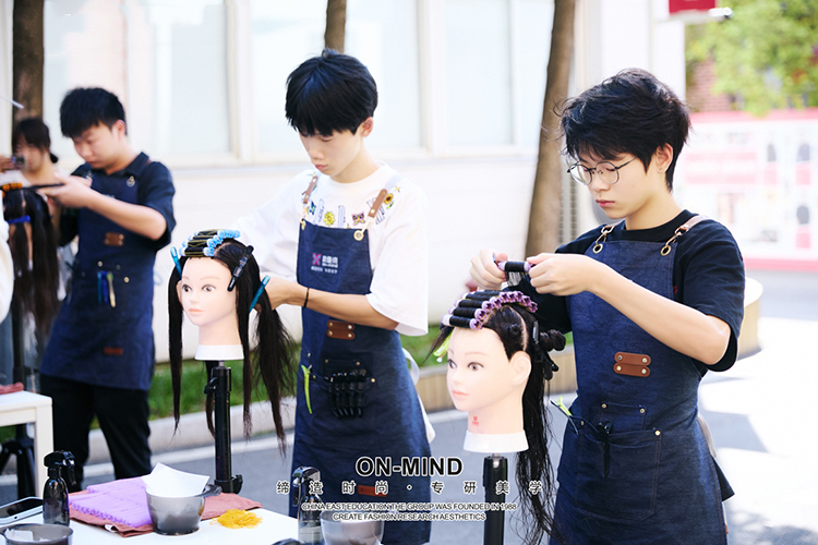 针对零基础学生,欧曼谛开设美发全科班,从剪刀握法、分区裁剪、发质分析开始,到烫染、造型、接发、男士油头、新娘盘发全链路教学,90% 实操 + 小班手把手指导,学完直接上手真人实操。